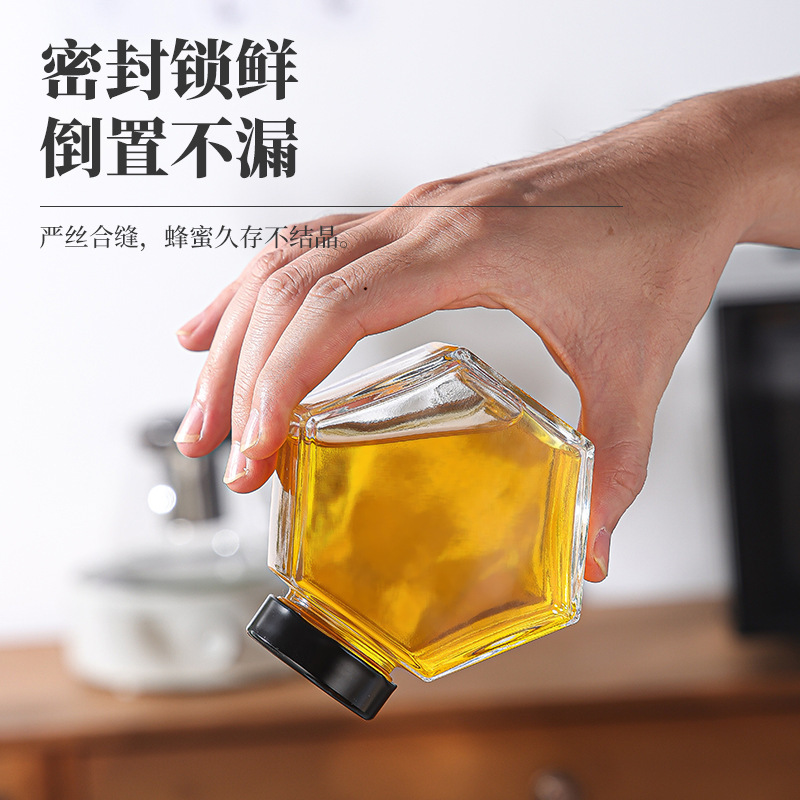 现货六棱玻璃瓶子密封罐小六角果酱辣椒酱柠檬膏蜂蜜罐头瓶食品级