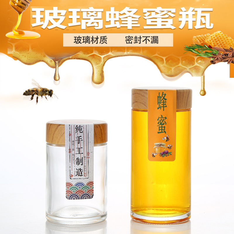 现货耐高温玻璃蜂蜜瓶透明蜜糖罐多规格木纹盖蜂蜜瓶厨房家用蜂蜜