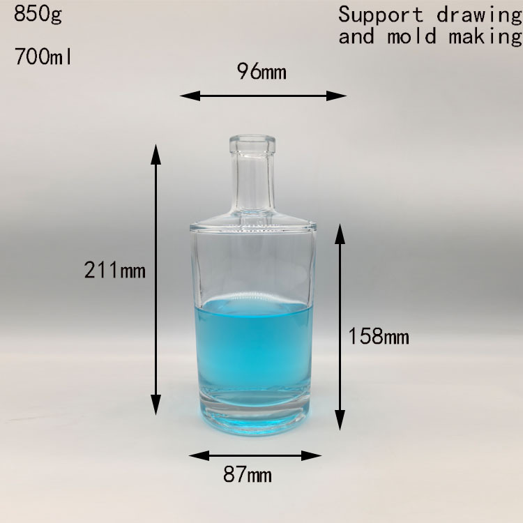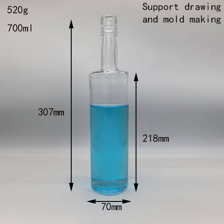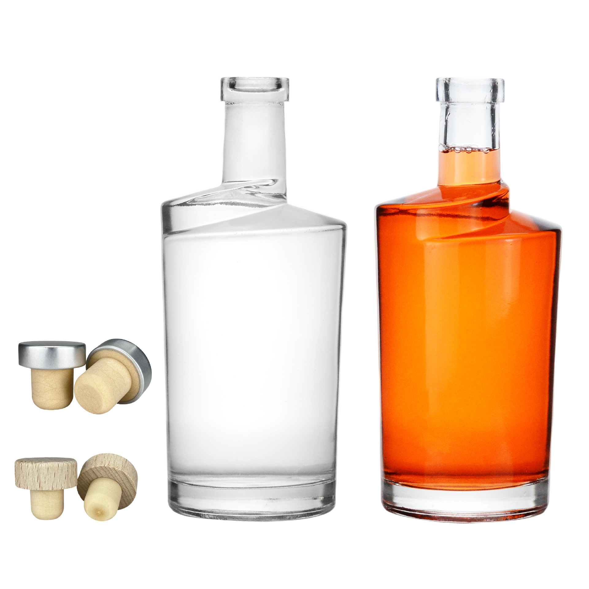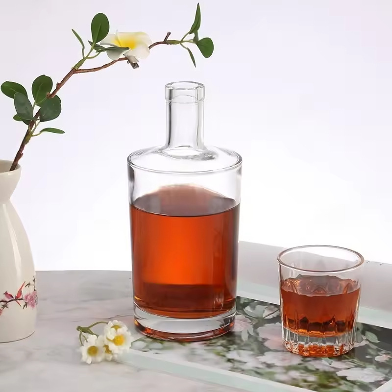 厂家生产定制700ml透明玻璃洋酒瓶木塞口圆形伏特加威士忌空瓶