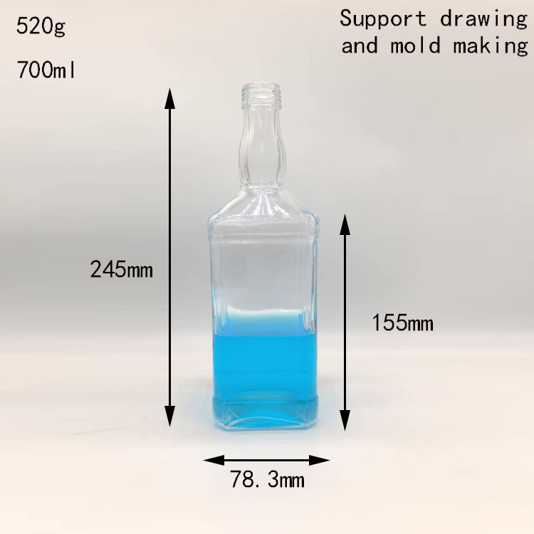 工厂批发700ml透明玻璃瓶白酒瓶 四方形威士忌烈酒洋酒瓶配套盖子