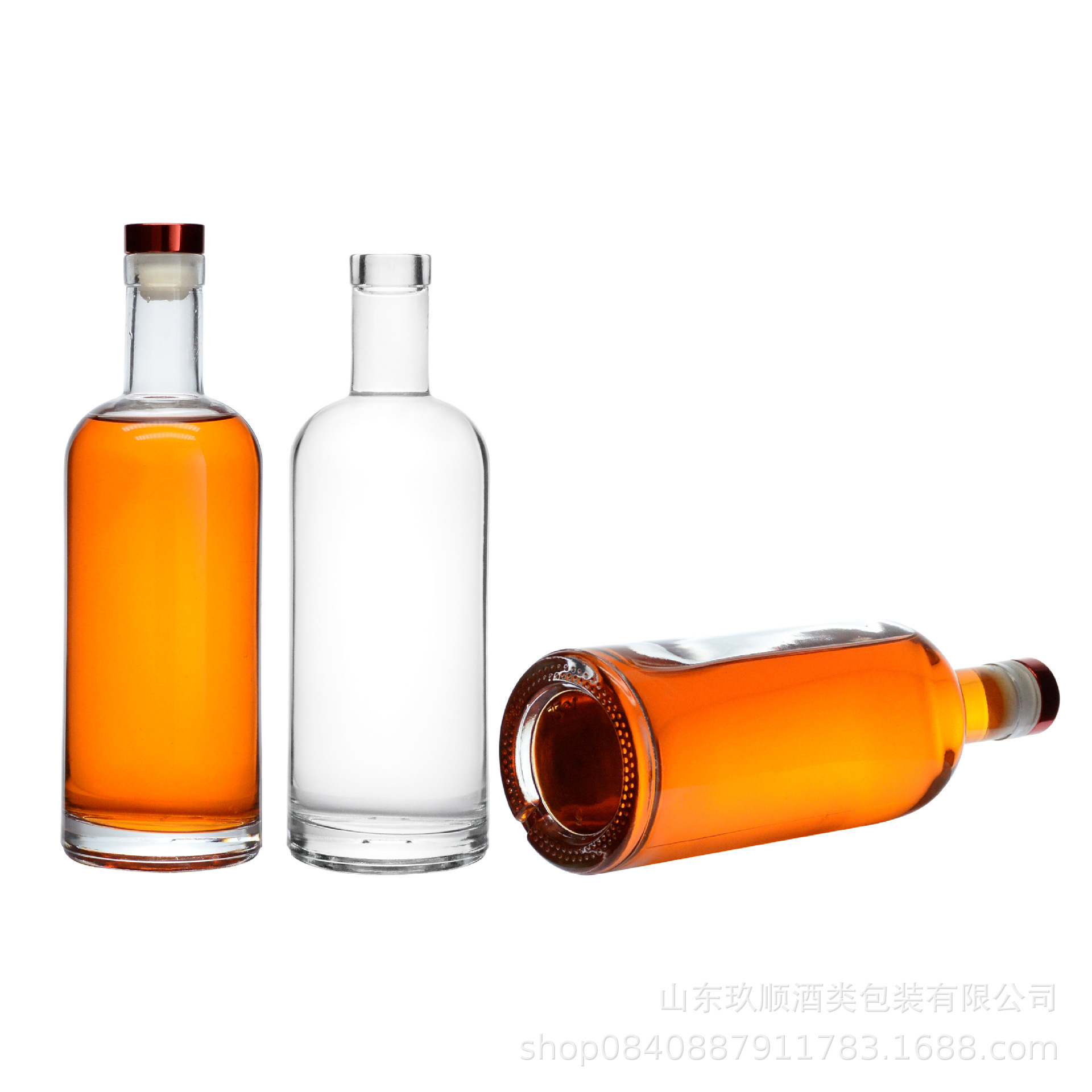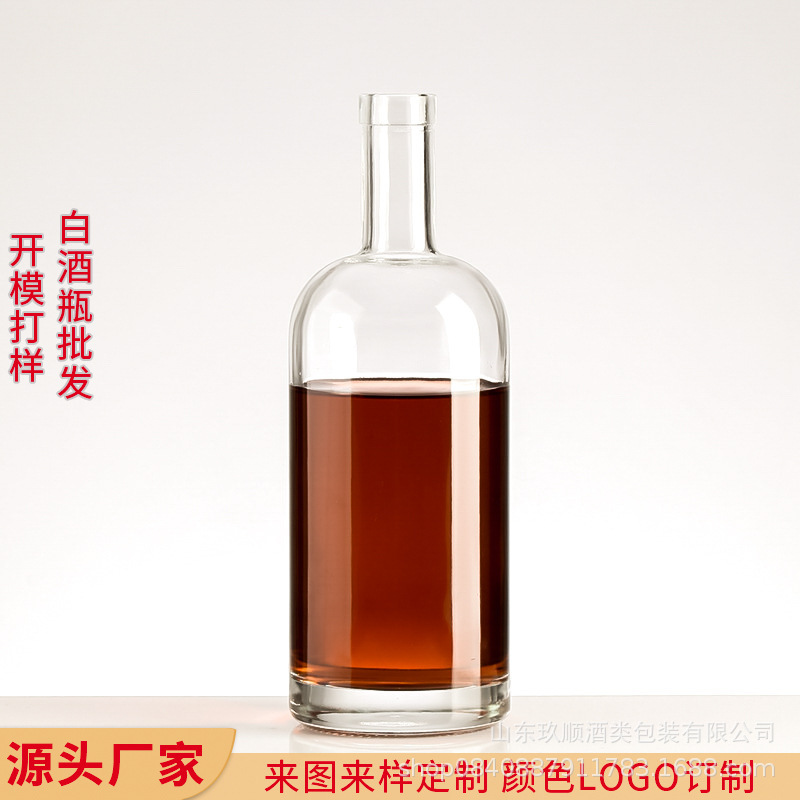 源头工厂批发晶白料玻璃酒瓶 750ml威士忌圆底锥形冰酒空瓶洋酒瓶