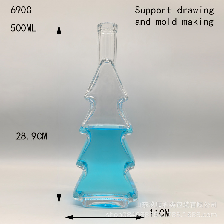 厂家 500ml圣诞树玻璃瓶洋酒瓶 威士忌轩尼诗白兰地XO空酒瓶