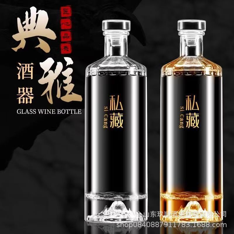 厂家批发晶白料珍藏山底透明白酒瓶500毫升空酒瓶自酿酒一斤装分
