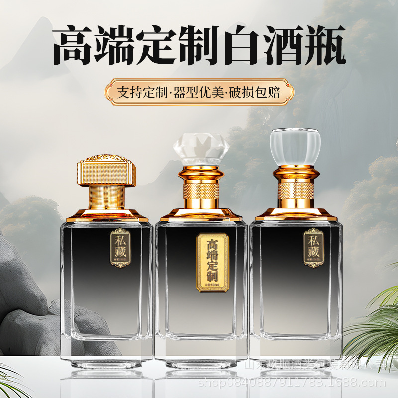 厂家热销高档玻璃白酒瓶喷涂烤花500ml酒瓶一斤装空酒瓶礼盒包装