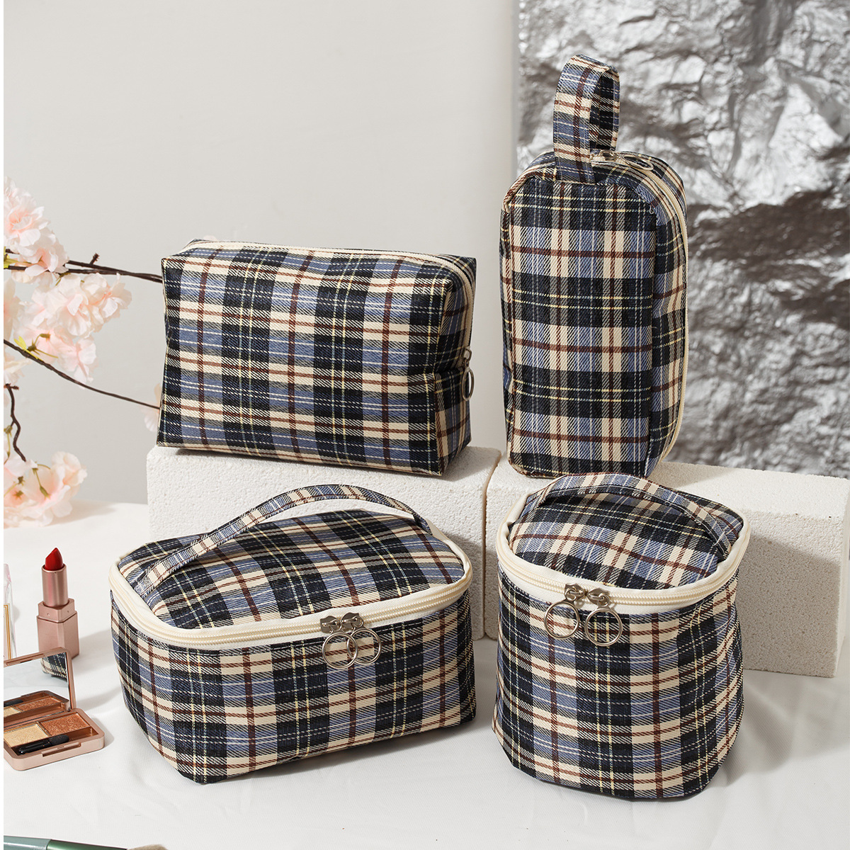 新款格子印花化妆包旅行护肤品收纳洗漱大容量便携手提包笔极简风