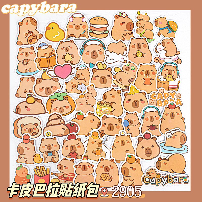 卡皮巴拉贴纸卡通可爱手账本ins风贴纸可爱卡通熊卡皮贴纸50张1包