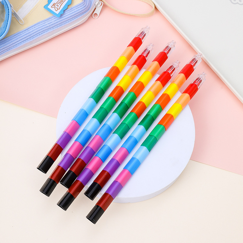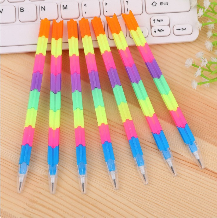 80怀旧文具创意彩虹多功能子弹头 积木笔铅笔百变变形8节彩色奖品