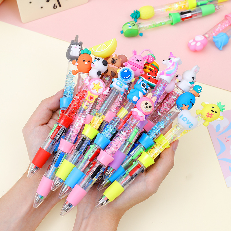 创意卡通可爱流沙四色按动圆珠笔学生文具奖品礼物手账圆珠笔多色