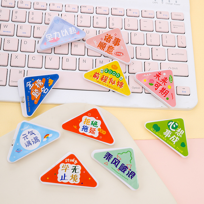 创意励志文字三角夹学生pp便签夹亚克力文件防卷夹试卷收纳边角夹