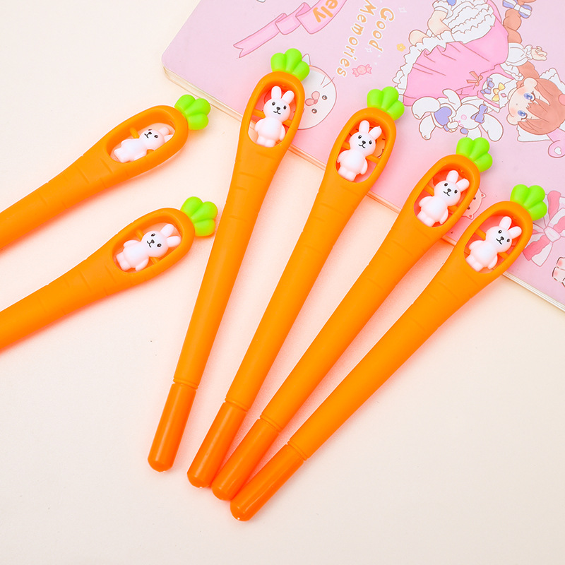创意胡萝卜旋转兔子中性笔签字水性碳素中性笔学生奖品水笔胡萝卜