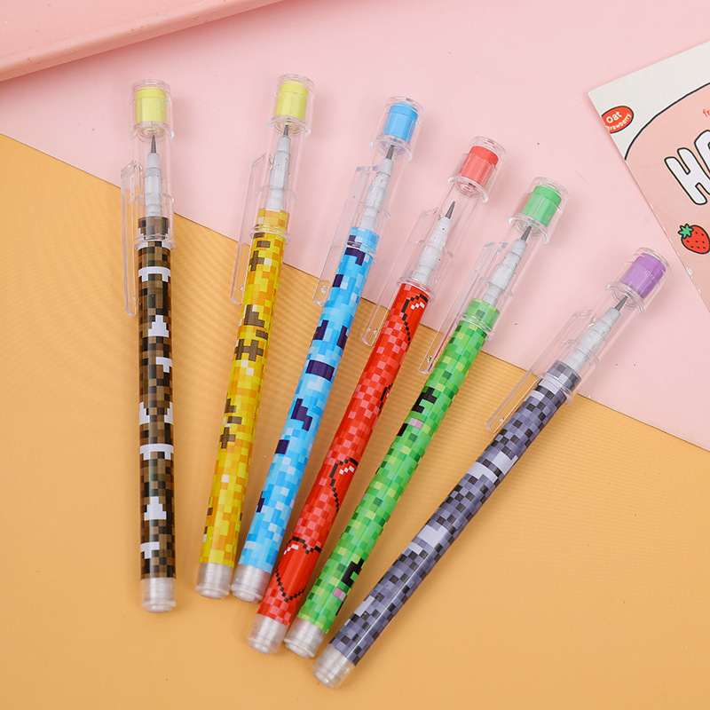 跨境马赛克9节下蛋铅笔卡通铅笔学生奖品铅笔带橡皮擦文具店用品