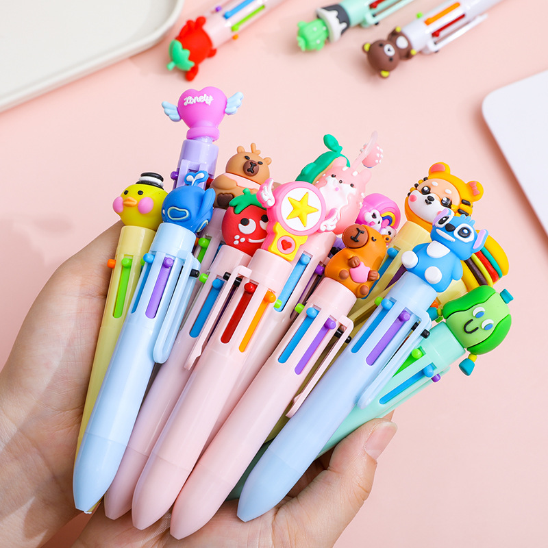 爆款卡皮巴拉十色圆珠笔可爱多色合一按动中性笔学生油彩笔按压式