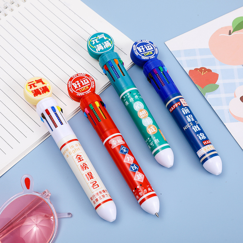 工厂店励志十色圆珠笔书写卡通励志文字多色合一按动签字圆珠笔