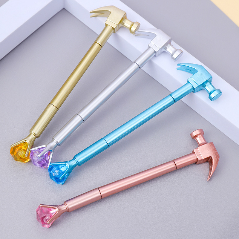 创意钻石锤子造型笔高颜值学生文具中性笔塑料锤子解压娱乐签字笔
