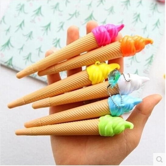 跨境创意可爱冰激凌造型中性笔 冰淇淋雪糕甜筒水笔黑色水笔批发