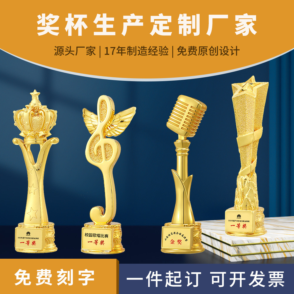 树脂奖杯定 制高级感校园主持唱歌跳舞比赛金色纪念品颁奖开发票