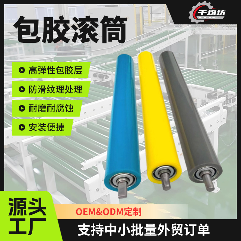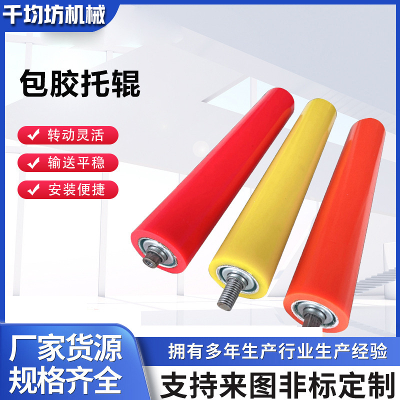 源头工厂批发包胶滚筒胶轮耐磨PU胶辊不锈钢流水线镀锌单双排胶辊