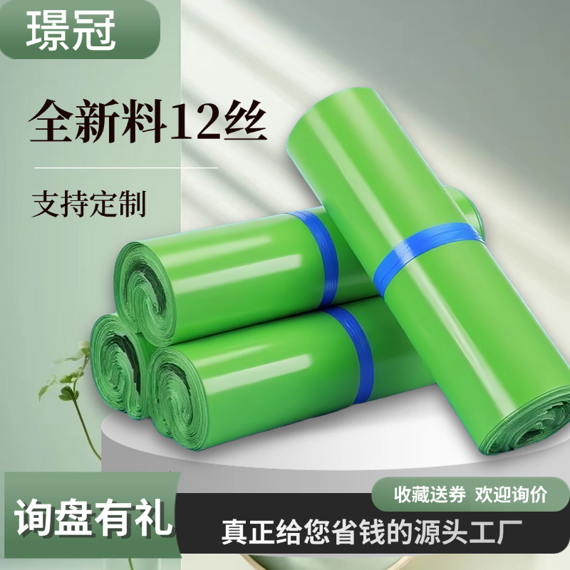 批发特惠12丝绿色全新料快递袋加厚防水电商快递打包袋耐磨耐撕扯