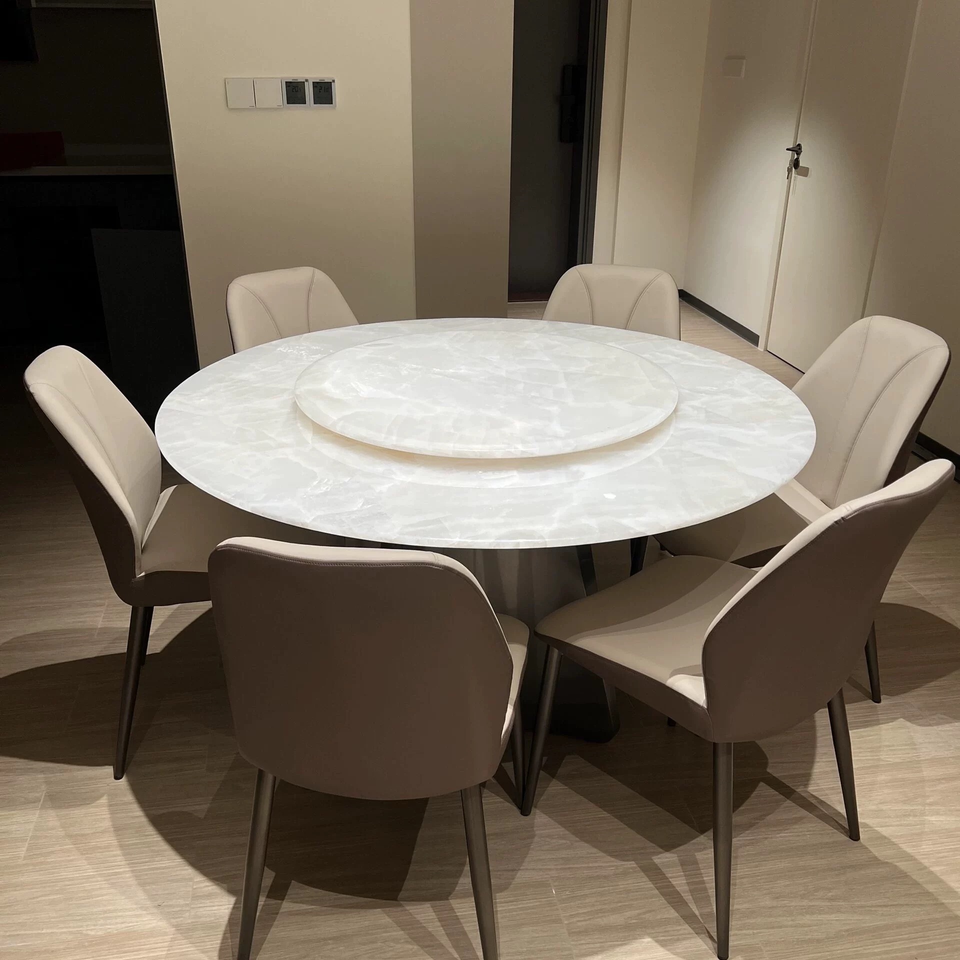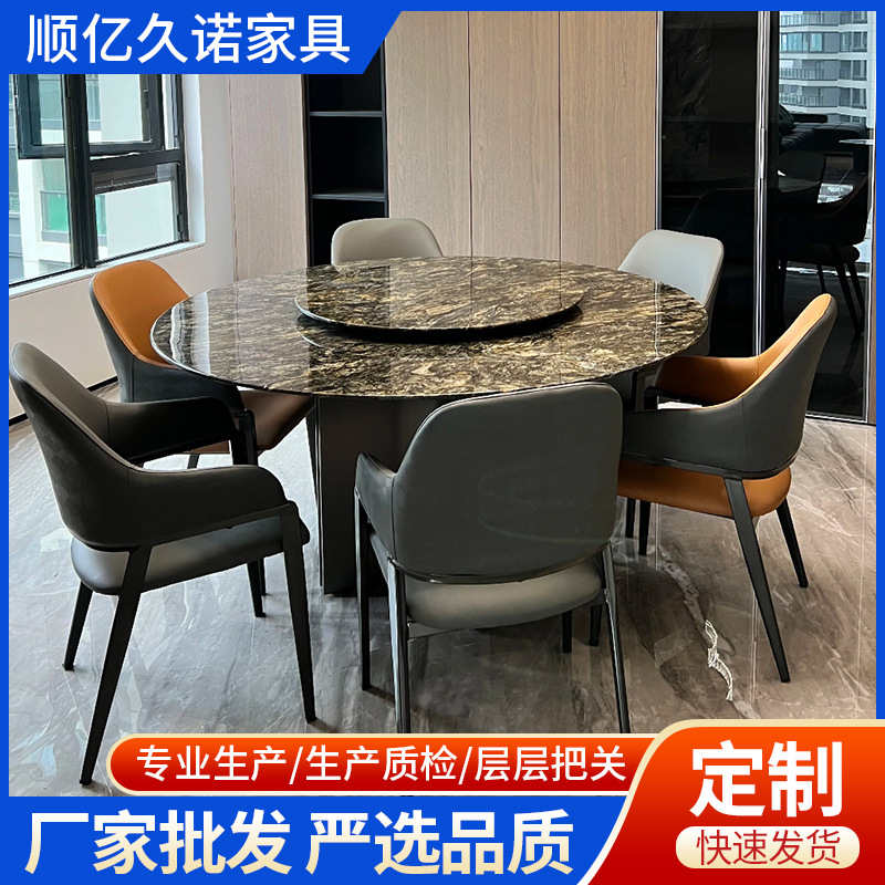 别墅餐桌天然奢石铂金钻客厅大理石圆形饭桌轻奢高端吃饭桌子定制