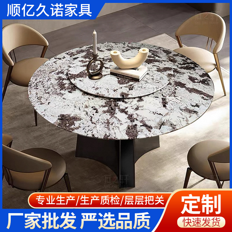 高级客厅餐桌天然奢石天山雪狐大理石圆形饭桌轻奢多形状极简