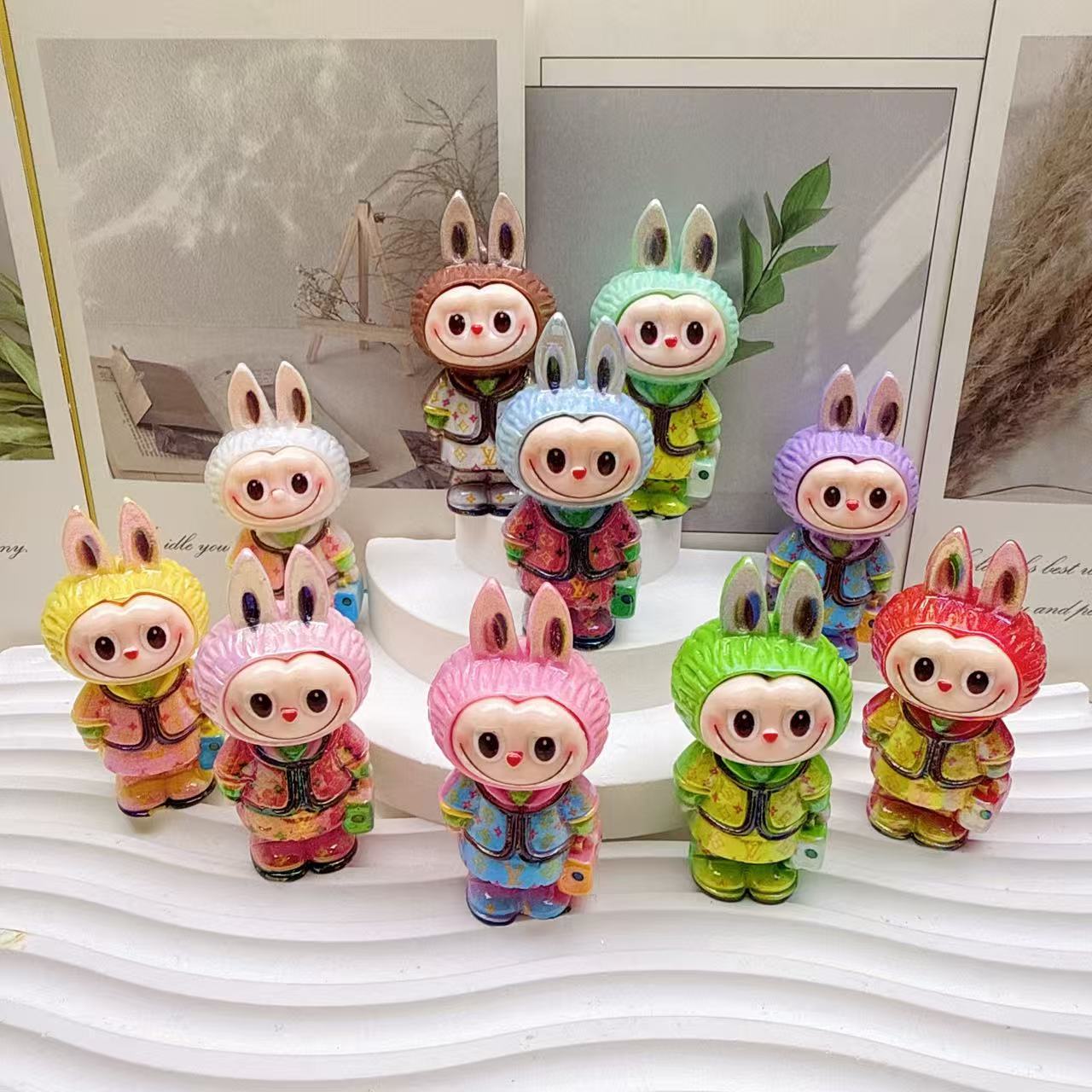 创意电镀拉布布 DIY潮玩萌粒盲盒潮玩公仔树脂饰品桌面车载小摆件