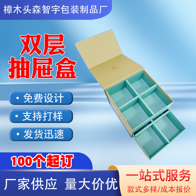 抽屉礼盒定 制高级感双层抽拉盒轻奢单层抽屉包装盒空盒彩盒订 制