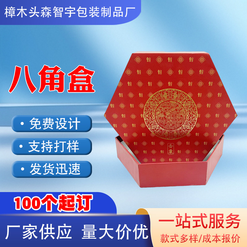 红色八角盒对戒指吊坠项链盒珠宝首饰包装礼盒饰品包装盒跨境盒子