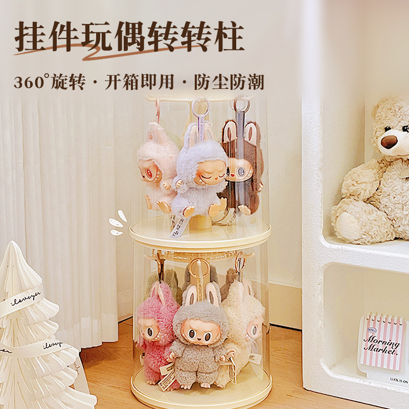 labubu亚克力透明展示盒盲盒收纳旋转桶泡泡玛特拉布布手办展示柜