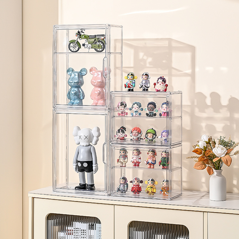 加厚大号盲盒收纳盒全透明防尘手办展示架柜乐高玩具磁吸收纳盒子