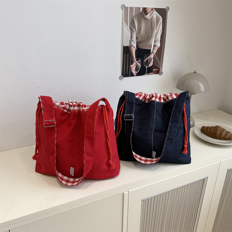 大学生帆布包女2024新款大容量上课包ins单肩帆布袋通勤布包大包