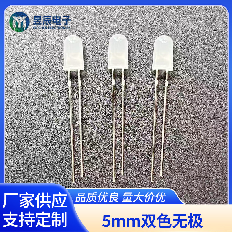 5mm双色无极圆头红绿双色红蓝无极2脚LED发光二极管