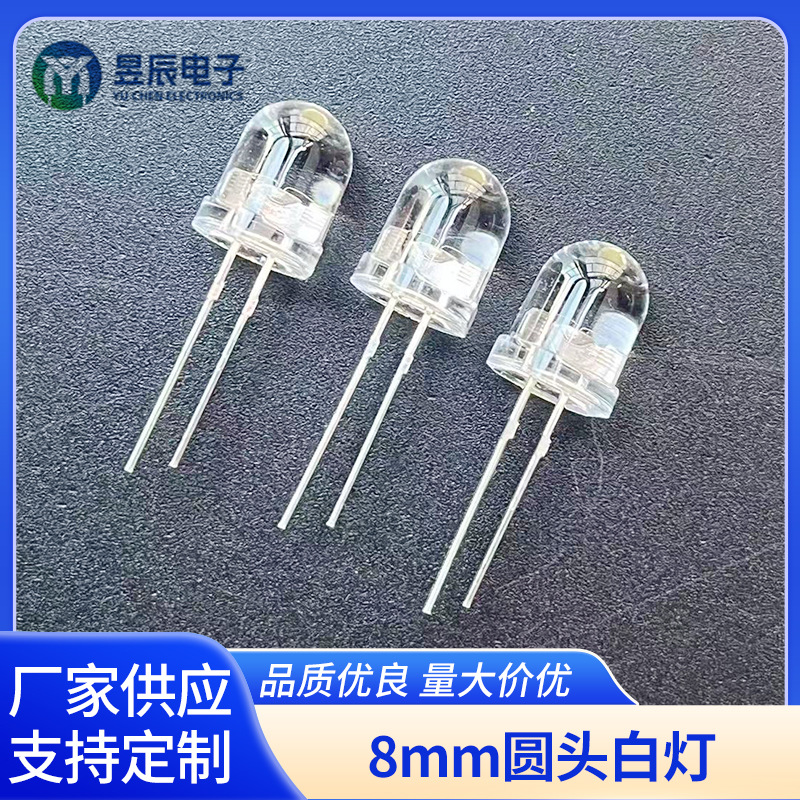 8mm圆头白灯厂家供应长脚有边直插灯珠8mm发光二极管led指示灯珠