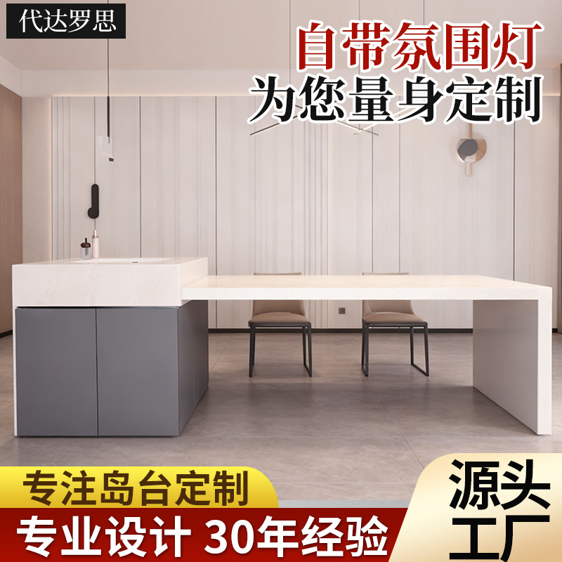 新款L岛台餐桌带水槽一体柜厨房料理伸缩中岛复合亚克力餐桌定制