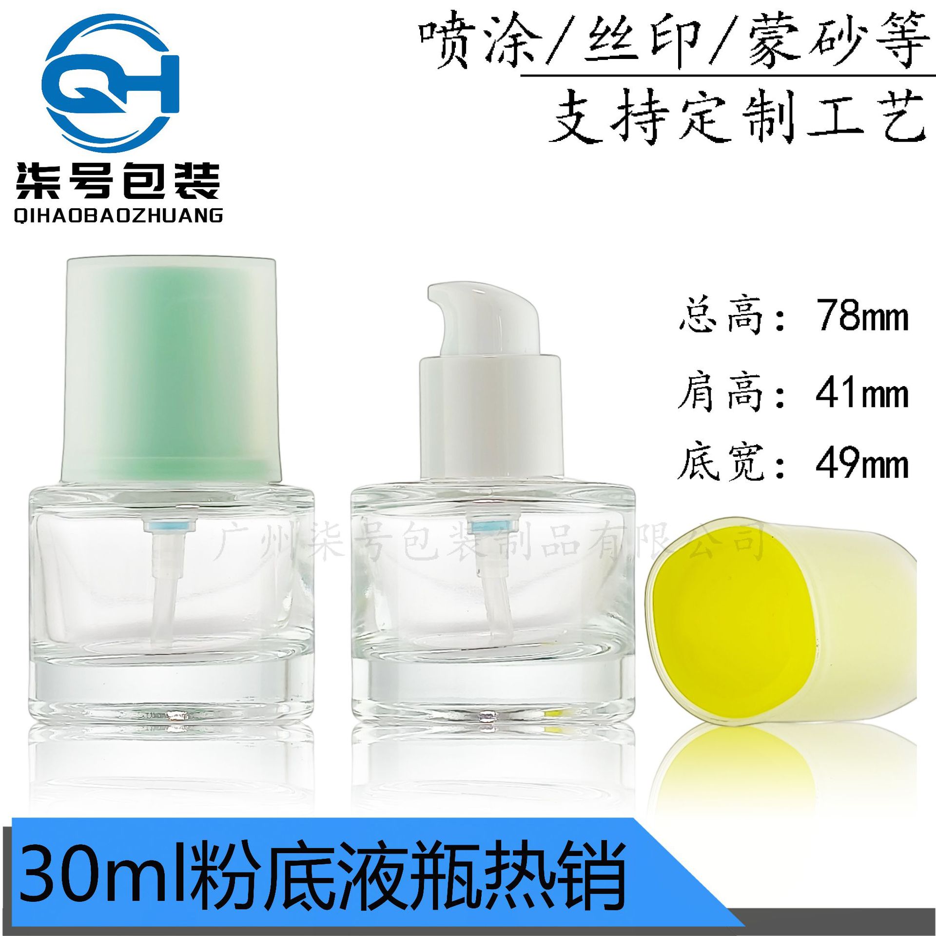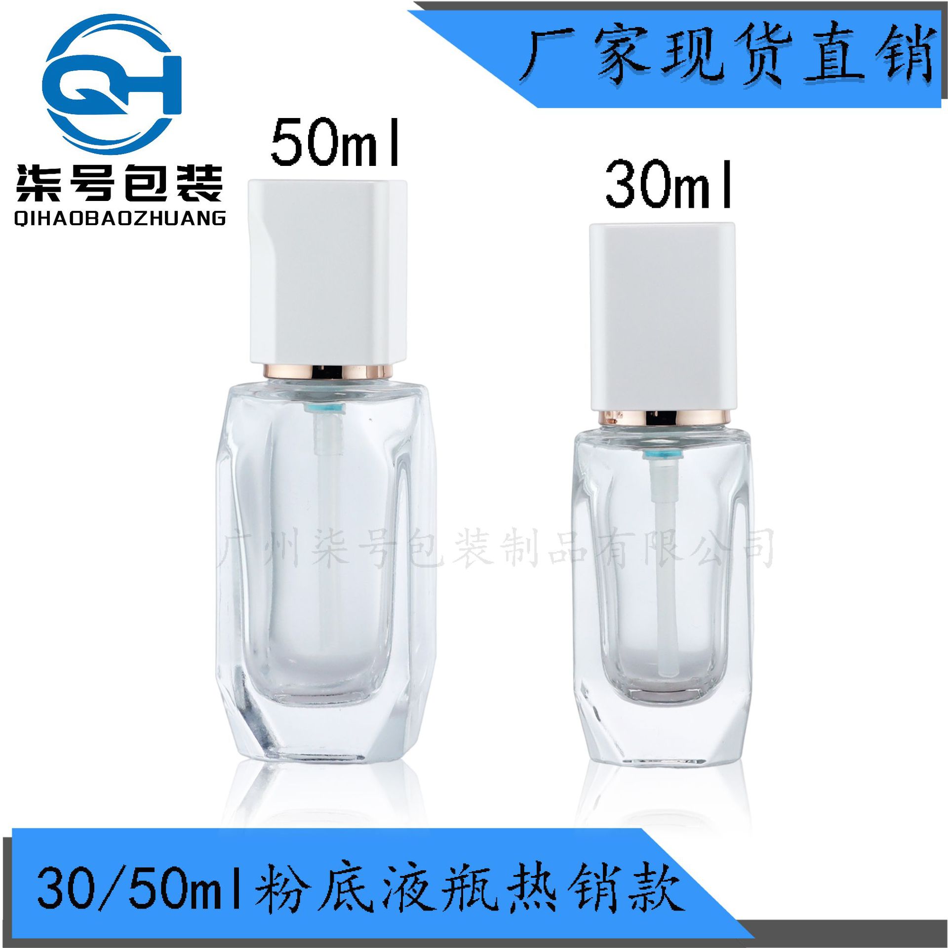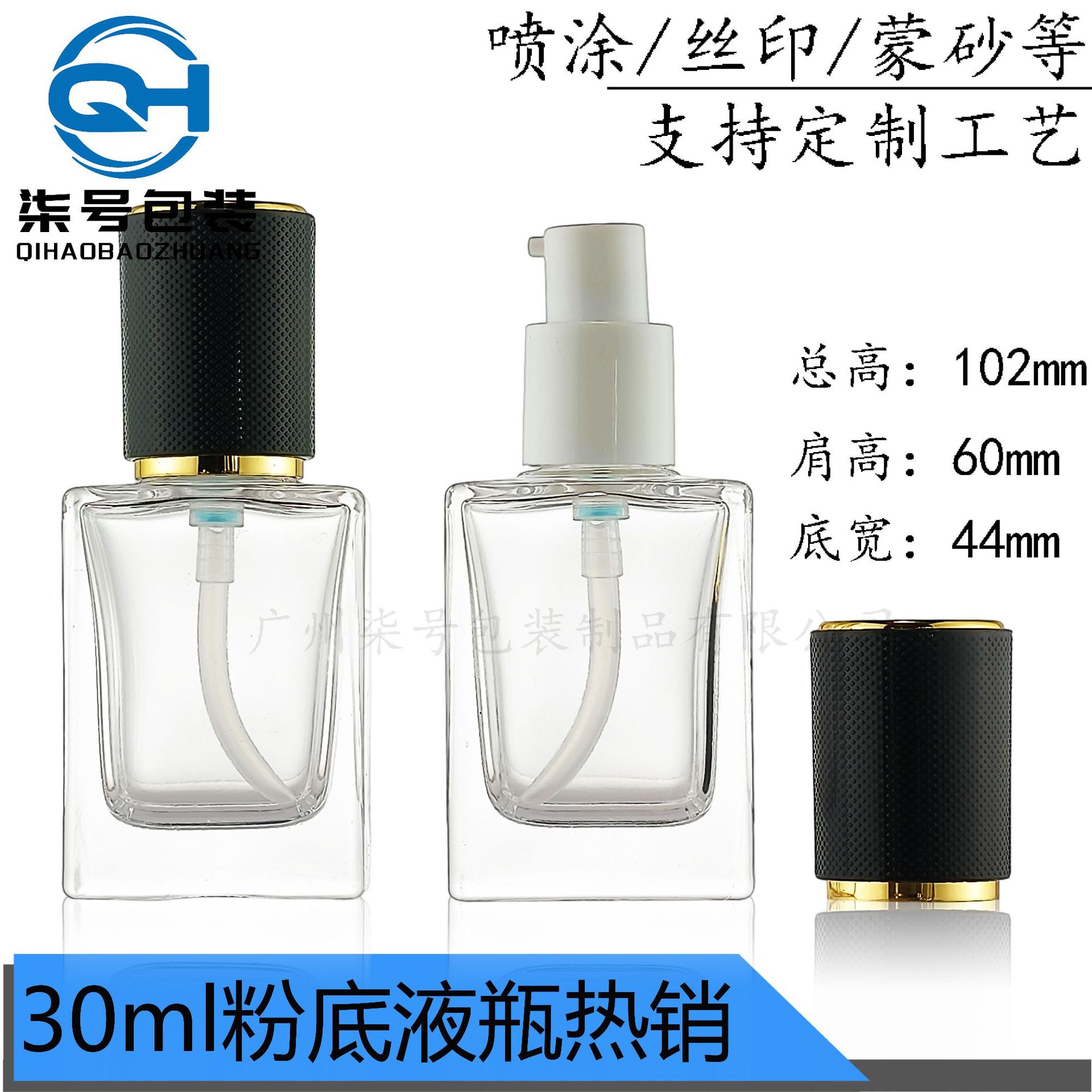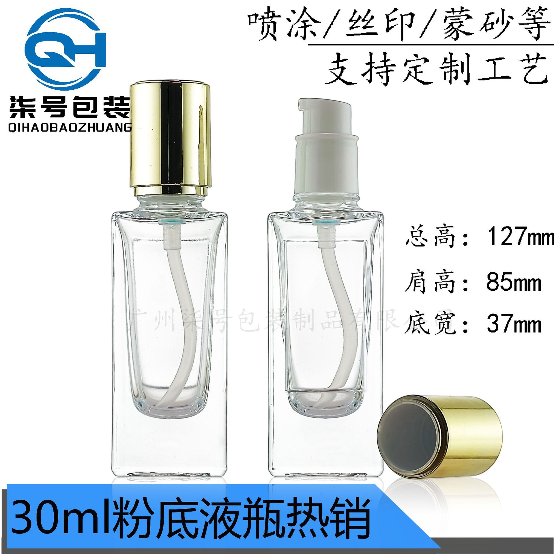 30ml方形粉底液瓶精华乳液按压式玻璃瓶玛利同款BB霜防晒隔离霜瓶