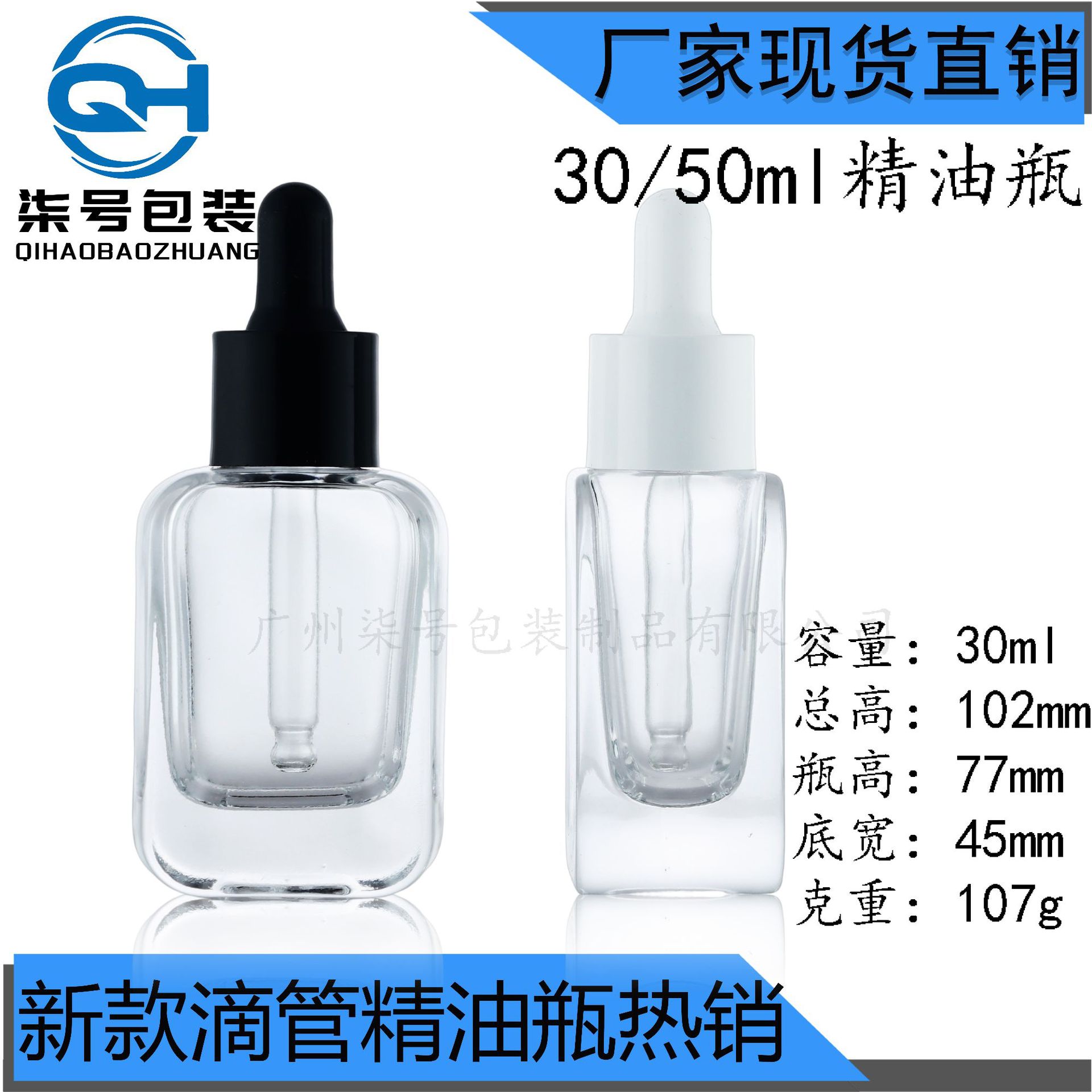 现货30ml50ml扁圆方形瓶香水瓶 压泵精华瓶滴管精油瓶 厚底玻璃瓶
