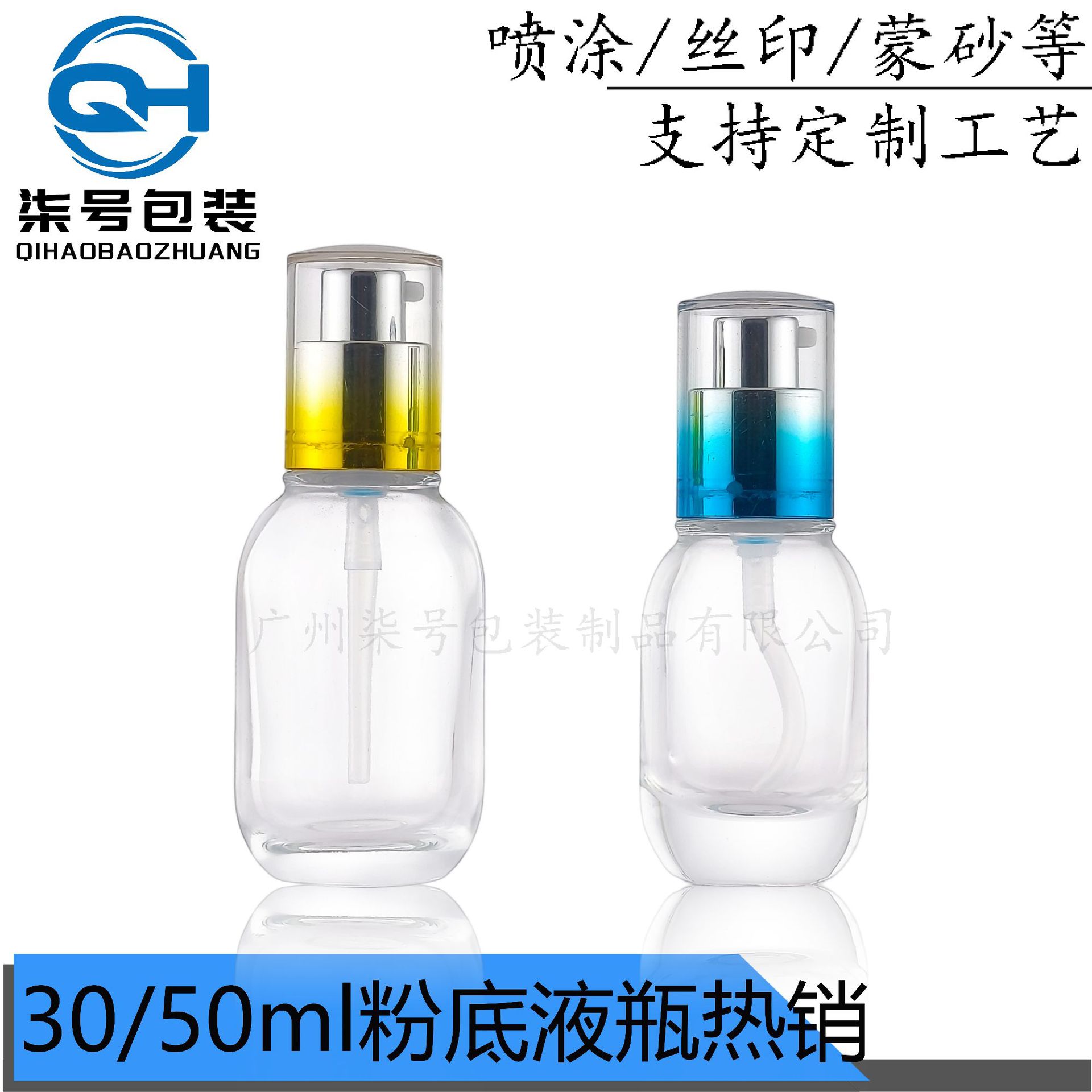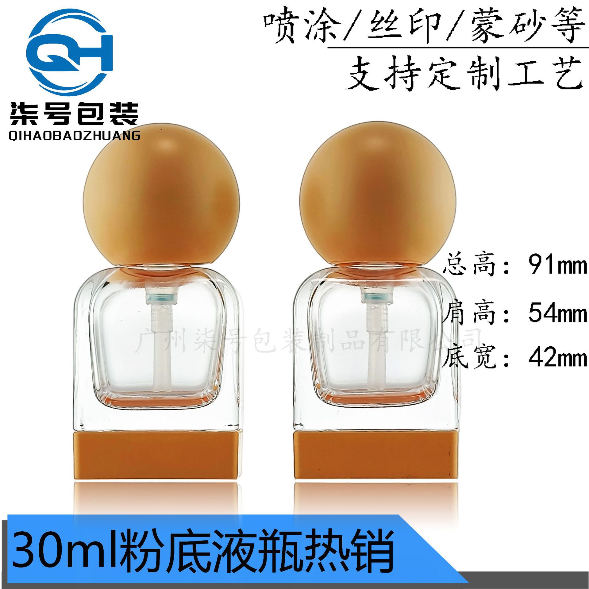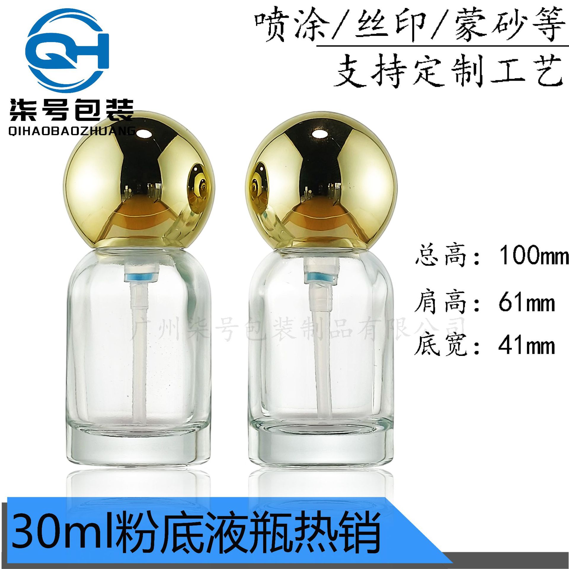 30ml圆球方形粉底液瓶按压式BB隔离霜分装精华瓶透明玻璃粉底液瓶