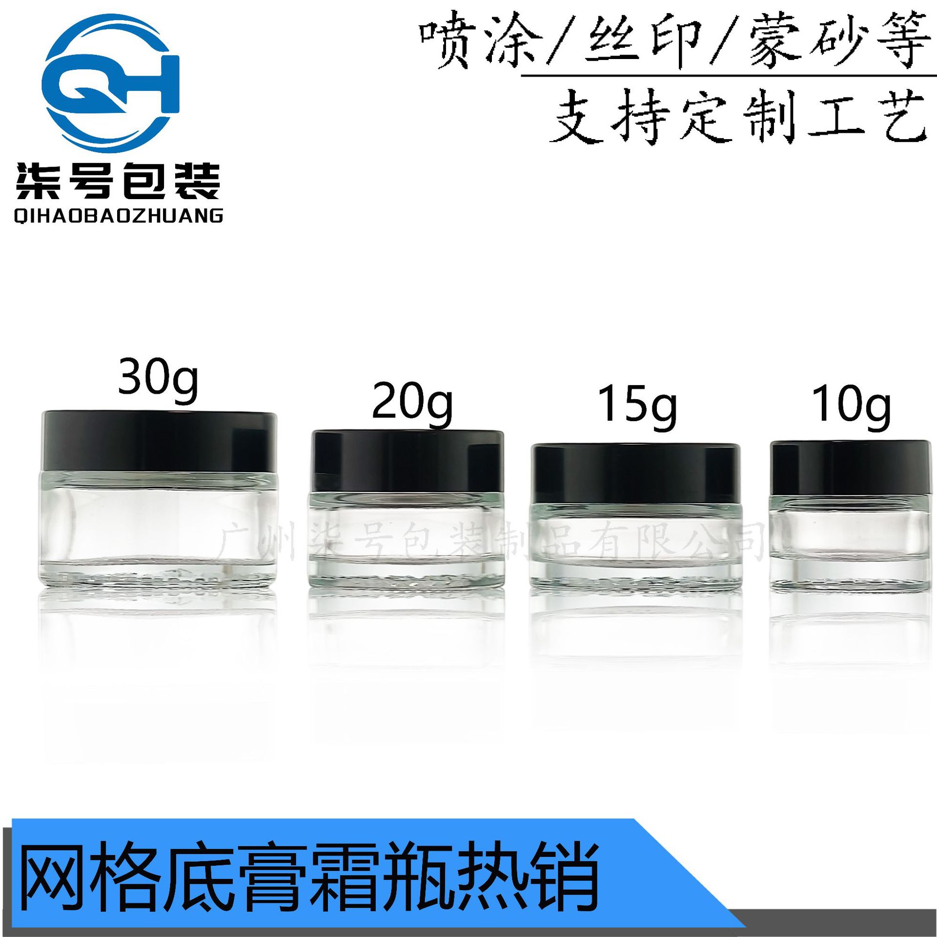 10g透明膏霜瓶15g面霜瓶20g粉眼霜分装玻璃30g网格底瓶化妆品包材