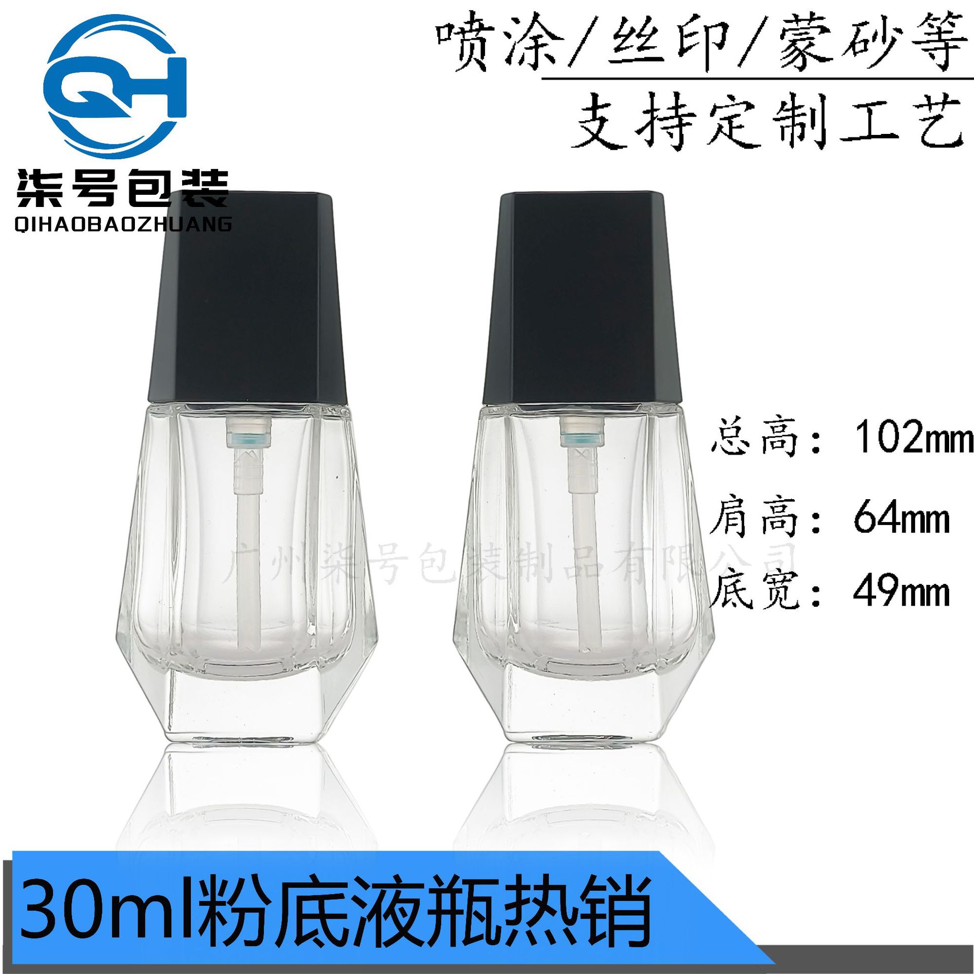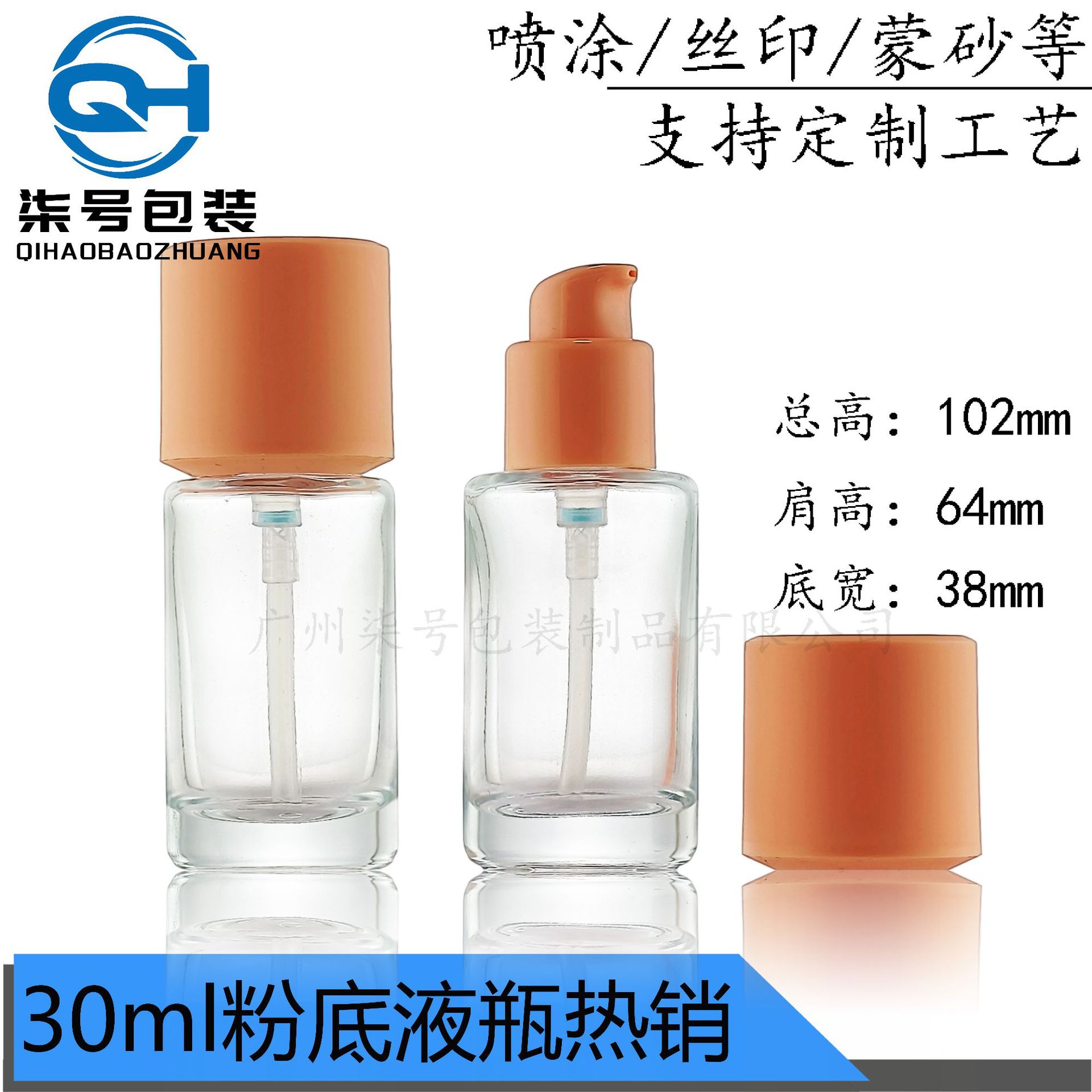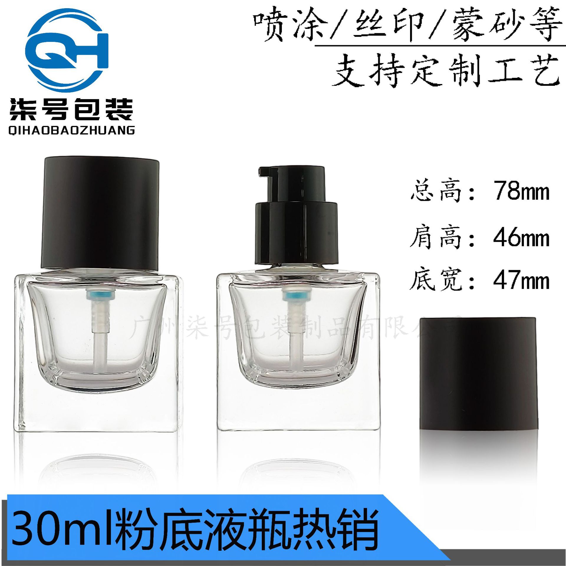30ml厚底粉底液玻璃瓶乳液分装瓶正方形精华液瓶乳液瓶隔离霜精华