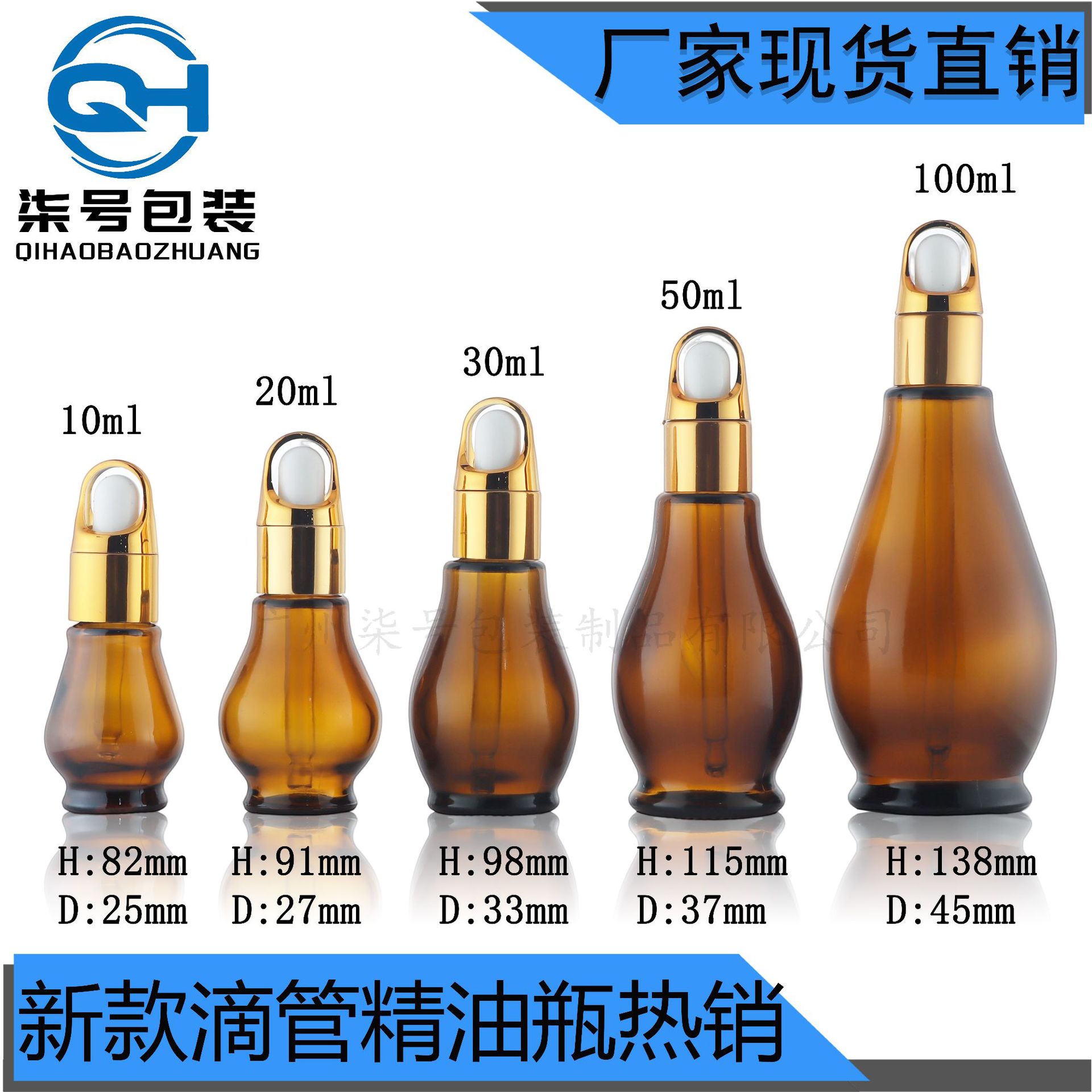 现货10-100ML单葫芦瓶玻璃分装喷雾瓶避光滴管瓶茶色精油瓶批发