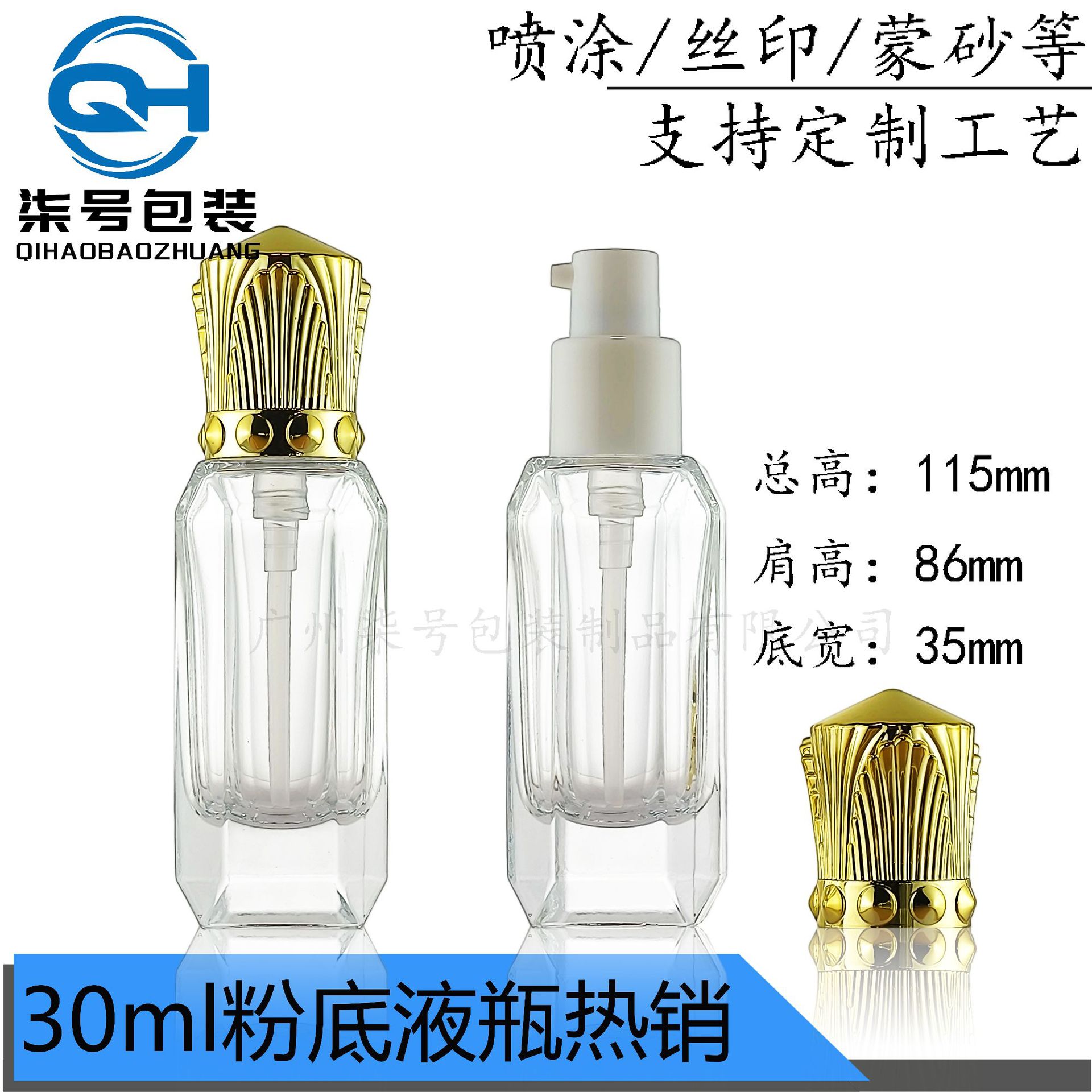 皇冠盖30ml八角形粉底液厚底玻璃瓶精油瓶分装瓶护肤品瓶现货定制