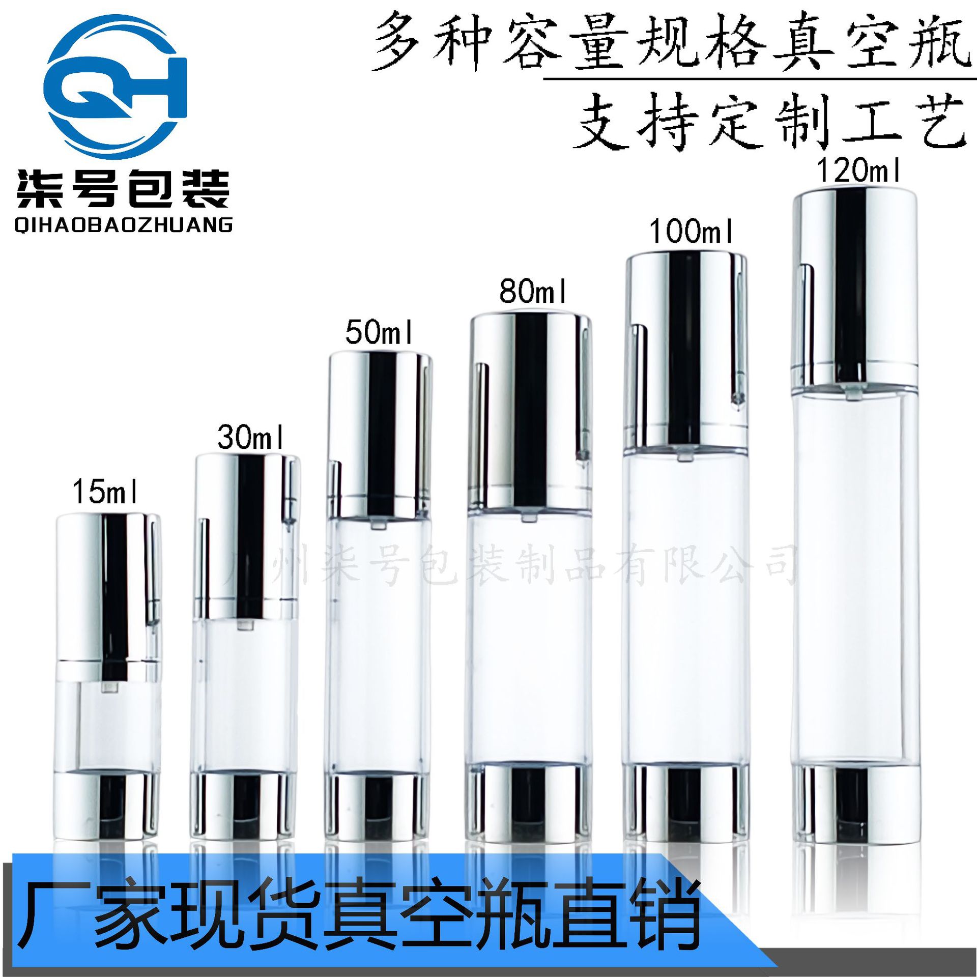 15-120ml直圆半包电镀真空乳液瓶AS爽肤水喷雾瓶旅行分装瓶鸟嘴泵
