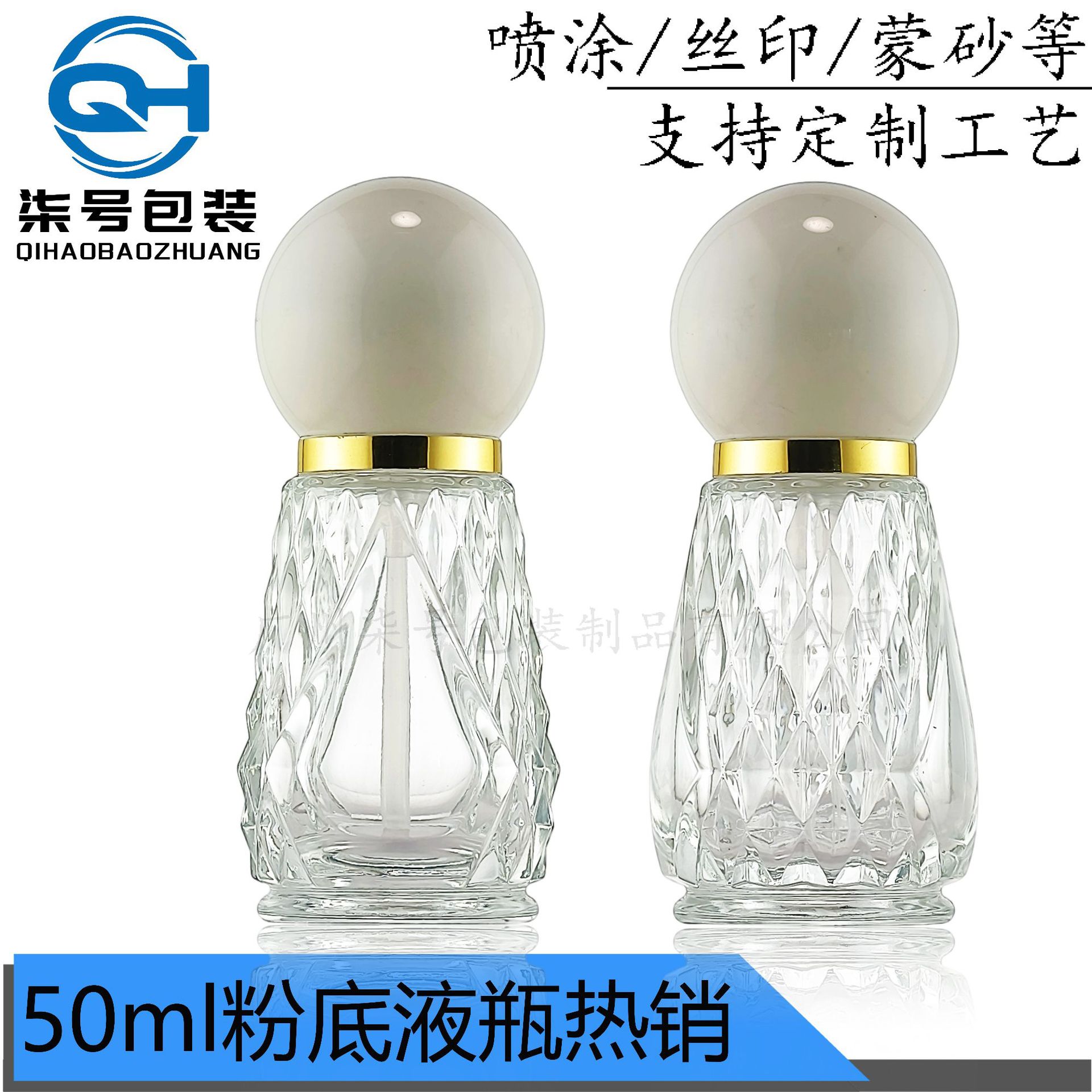 美白祛斑精华液50ML菱形凸纹小灯泡香水瓶球形外罩分装瓶现货批发
