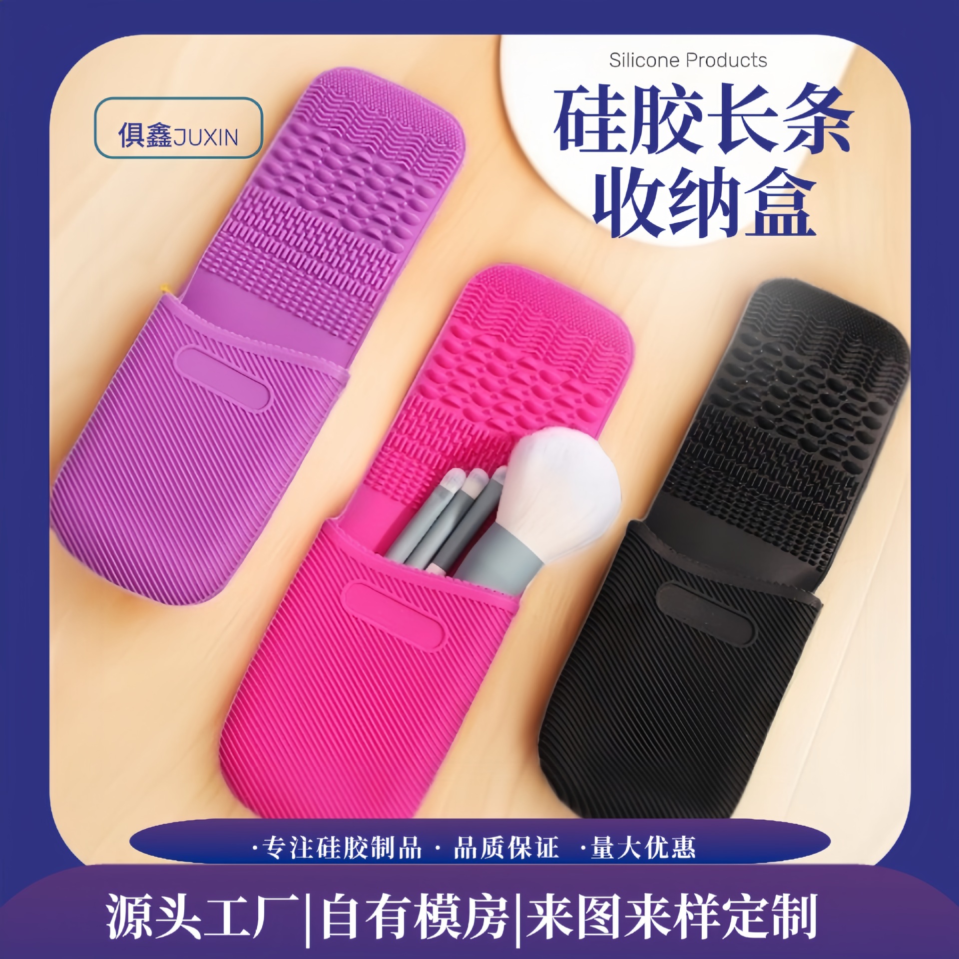 -               工厂爆款硅胶长条收纳盒吸盘式清洗化妆刷收纳袋美妆多功能洗刷垫