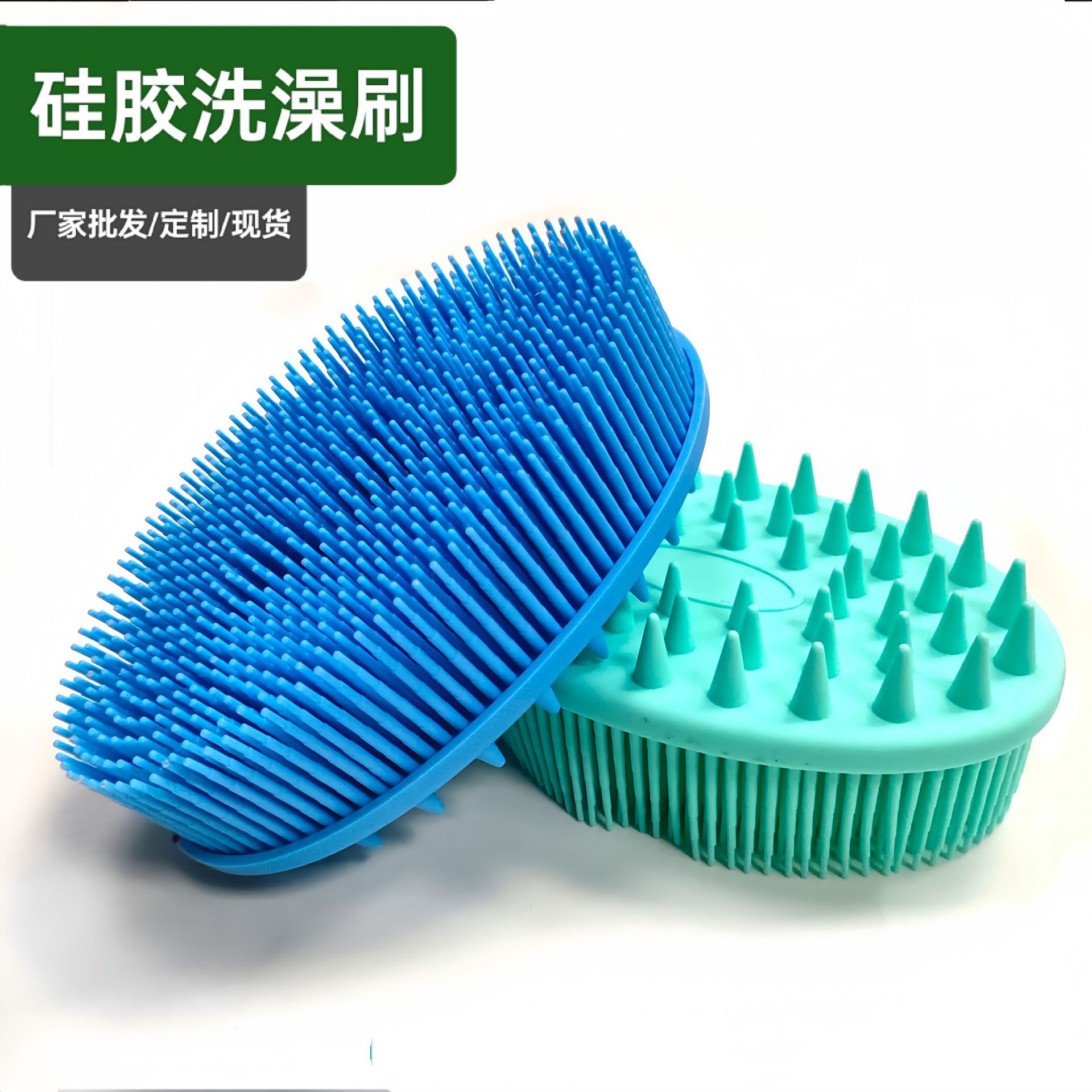 -               跨境爆款硅胶洗澡刷沐浴刷双面椭圆平头按摩宝宝感统训练触觉定制