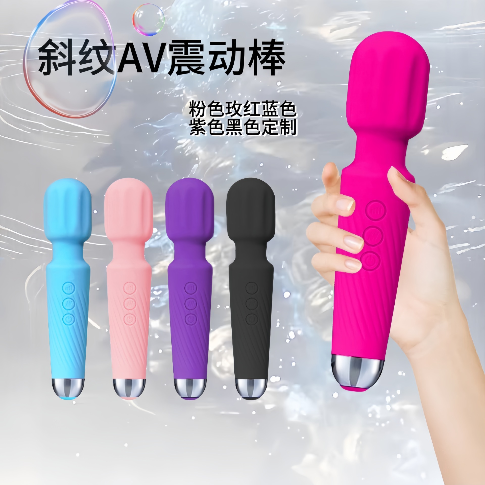 -               工厂批发硅胶AV震动棒斜纹防水静音女用震动棒自慰器情趣成人用品