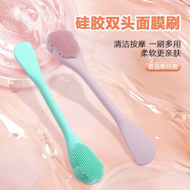 -               跨境硅胶面膜刷双头泥膜美妆清洗神器刷专用工具面膜清洁工厂批发