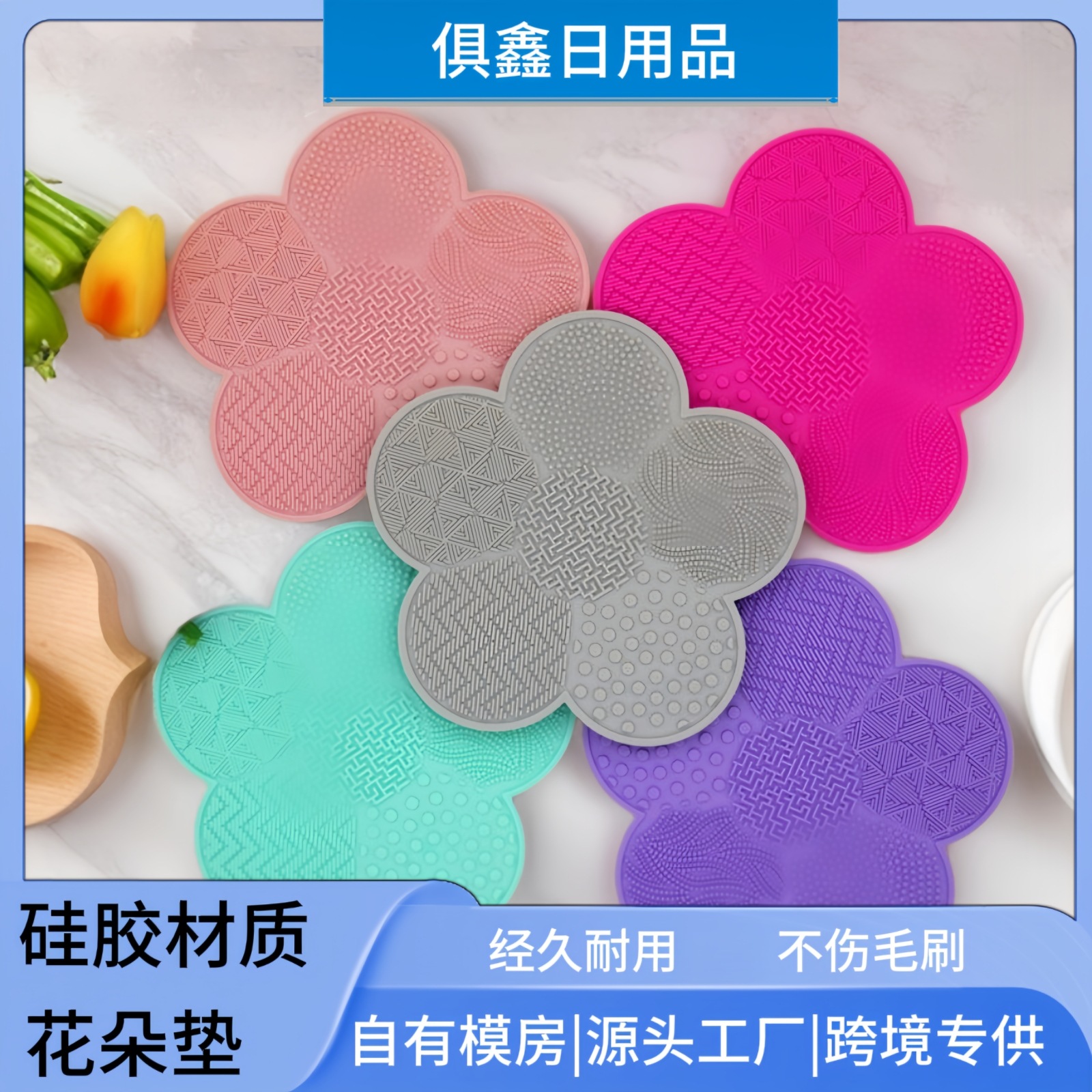 -               硅胶花朵洗刷垫 粉扑眉笔清洗工具 吸盘式化妆刷清洁器 工厂定制