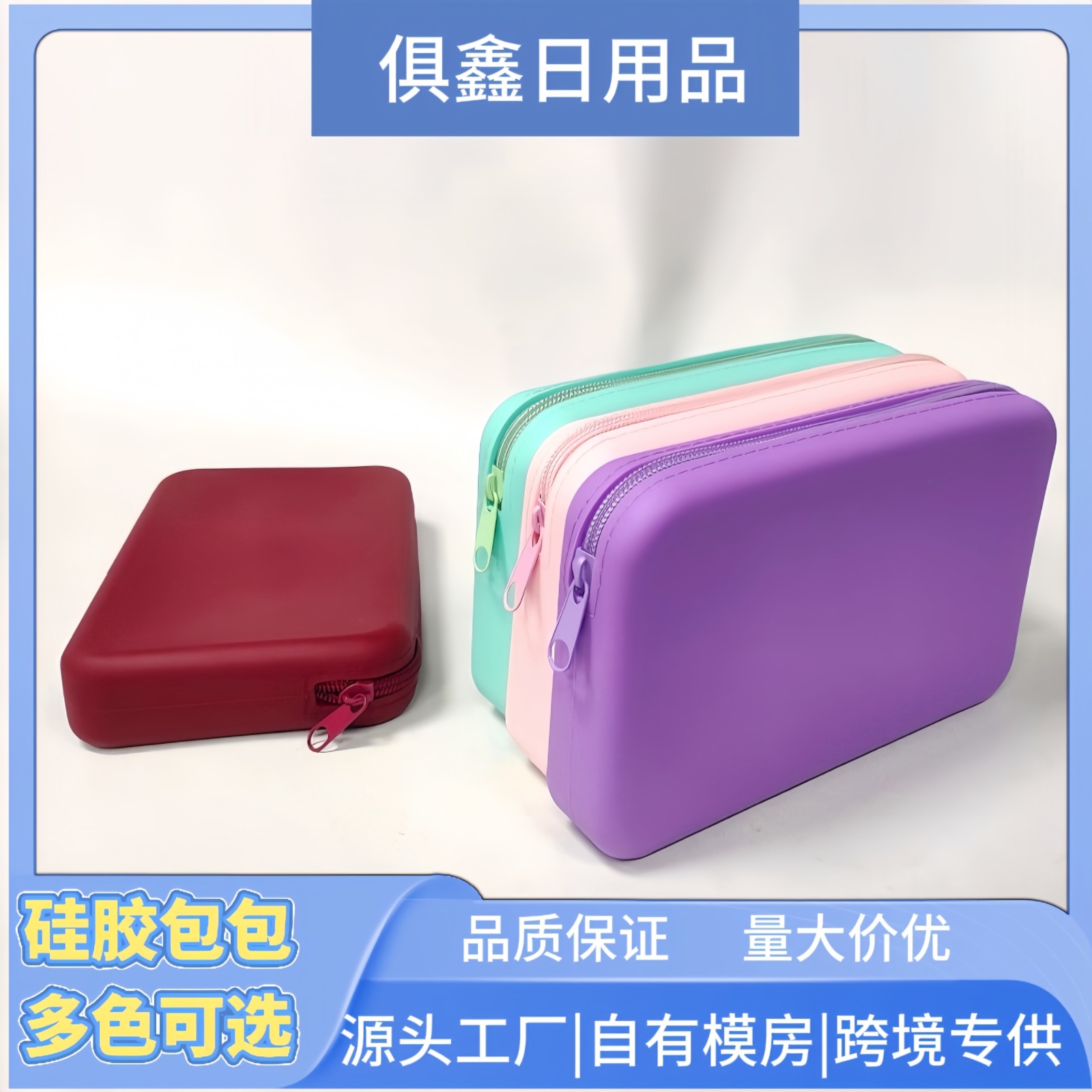 -               厂家批发硅胶收纳包方形防水便携化妆刷收纳包大容量硅胶包包定制