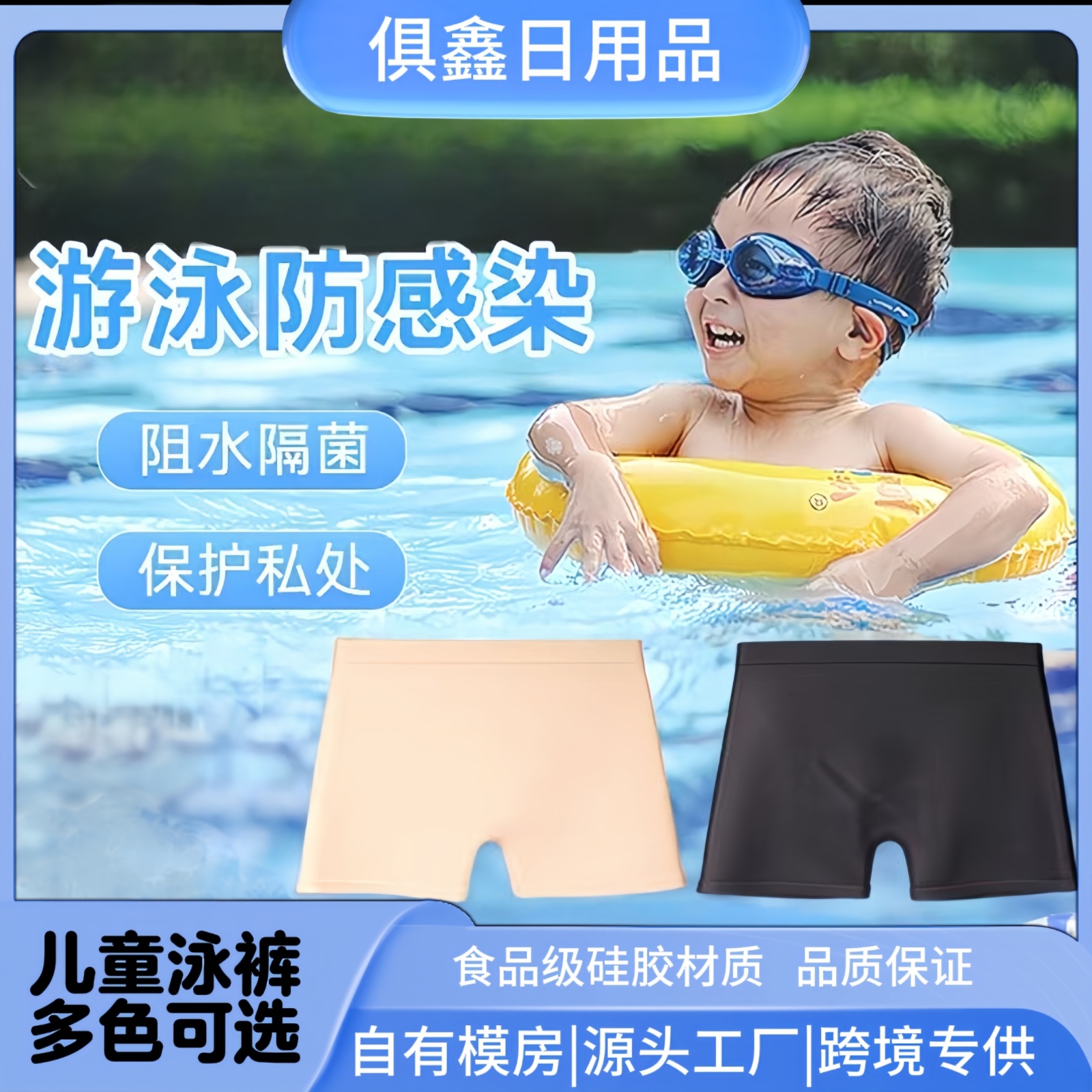 -               硅胶平角泳裤儿童泡温泉游泳戏水泳裤内裤私处隔水四角裤工厂批发