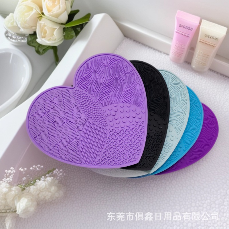 -               跨境爆款硅胶洗刷垫爱心带吸盘垫美妆刷清洗工具干湿两用工厂批发